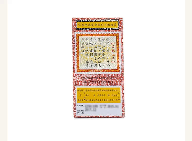 - 功能主治:润肺化痰、止咳平喘、护喉利咽、生津补气、调心降火。本品适用于伤风咳嗽、痰稠、痰多气喘、咽喉干痒及声音嘶哑。