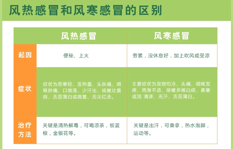 3.风寒感冒者不适用,其表现为恶寒重,发热轻,无汗,头痛,鼻塞,流清涕,喉痒咳嗽。