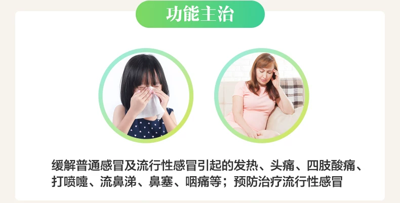 【适应症/功能主治】 适用于缓解普通感冒及流行性感冒引起的发热,头痛,四肢酸痛,打喷嚏。流鼻涕、鼻塞、咽痛等症状,也可用于流行性感冒的预防和治疗。