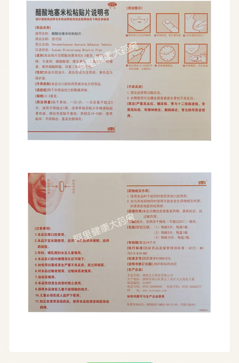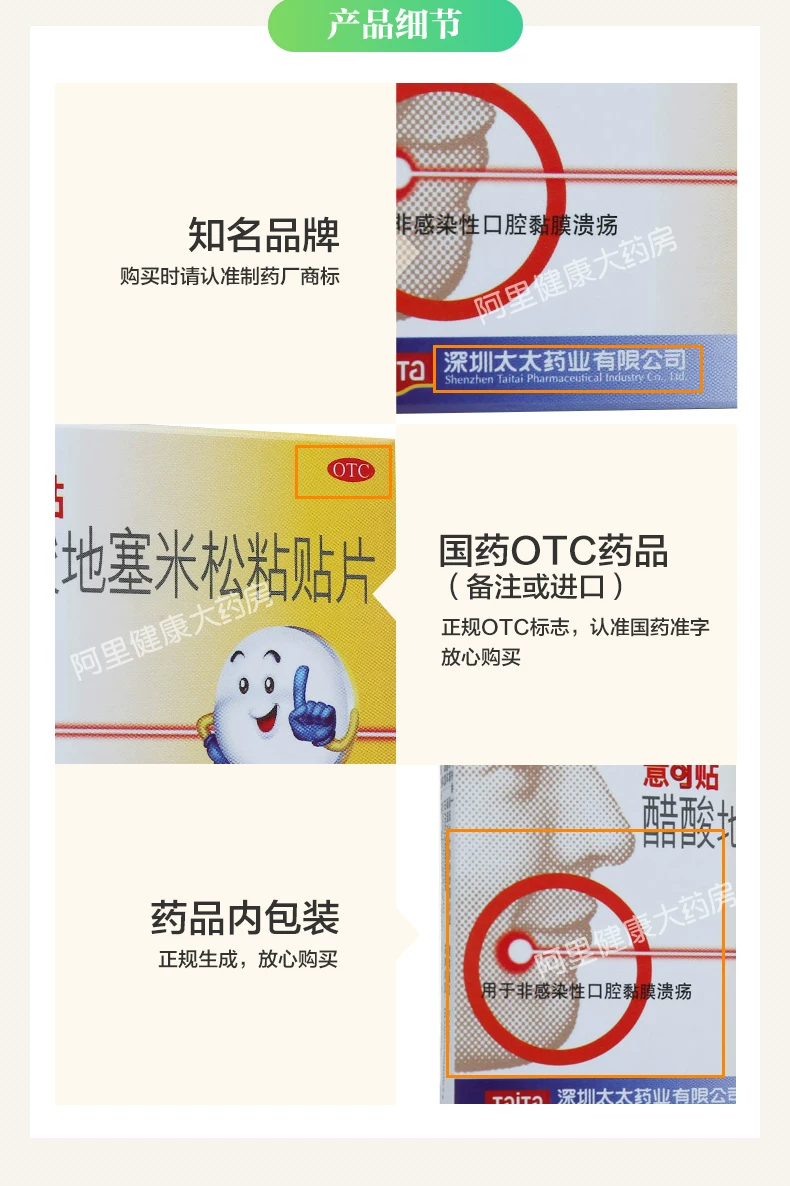醋酸地塞米松粘贴片,适应症为用于非感染性口腔黏膜溃疡。