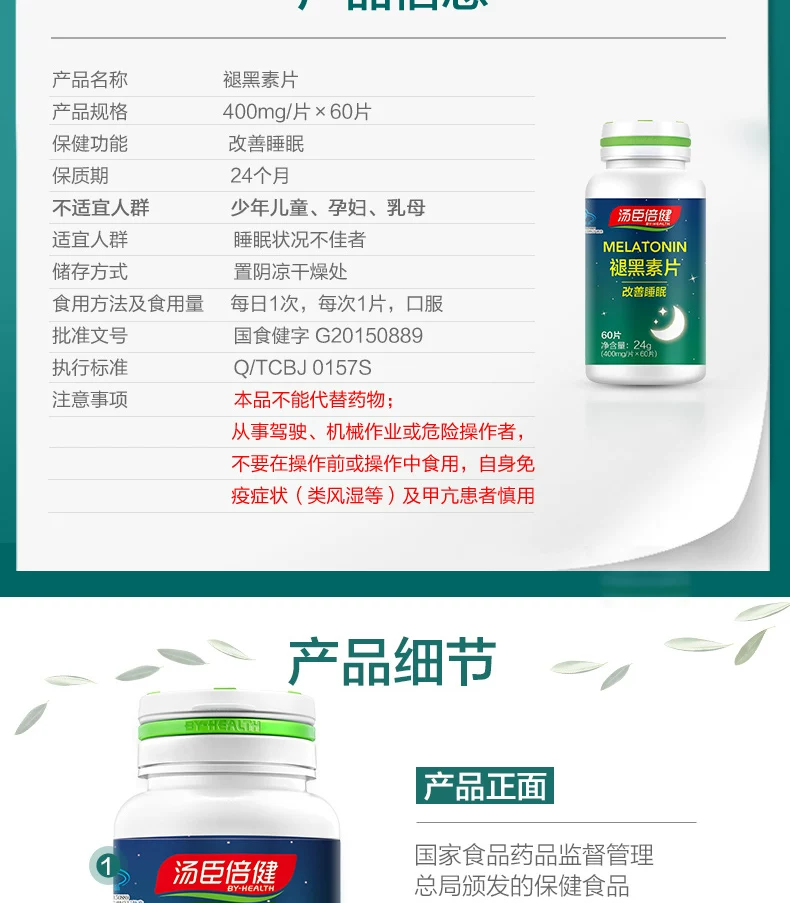 - 产品名称:BY-HEALTH/汤臣倍健 褪黑...