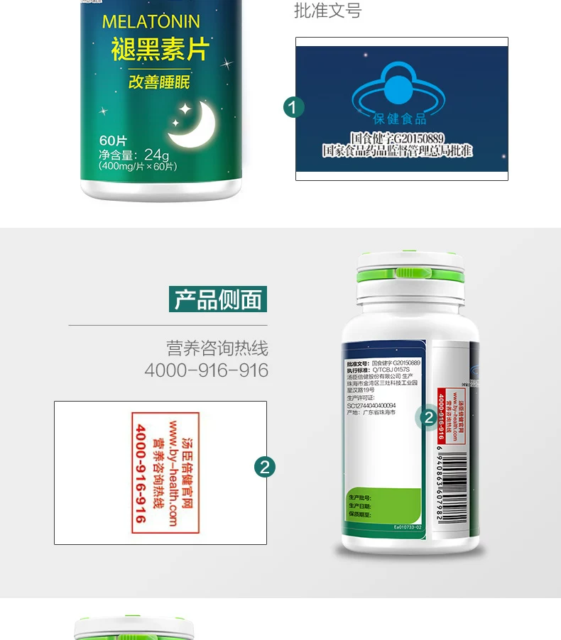 - 保健食品产品名称: 褪黑素片