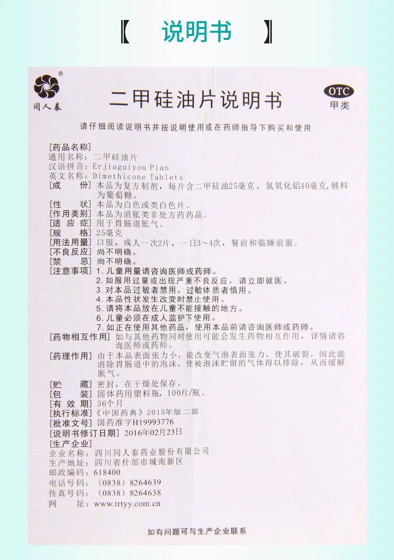 本品每片含主要成份二甲硅油25毫克、氢氧化铝40毫克、葡萄糖300毫克。