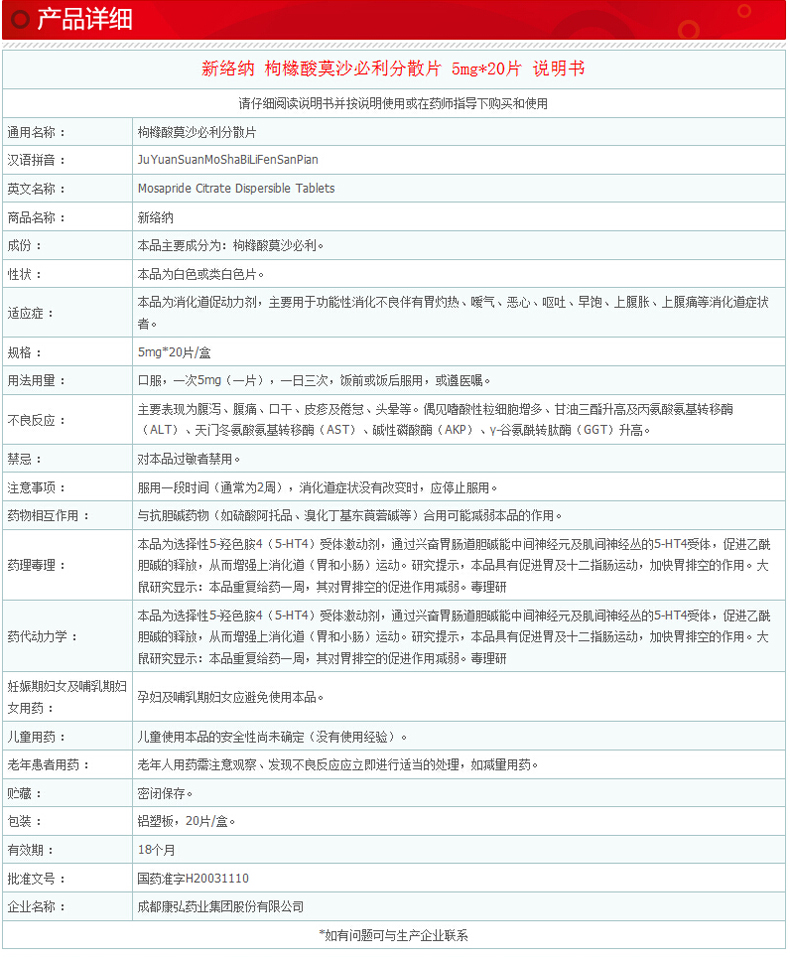 康弘 新络纳 枸橼酸莫沙必利分散片