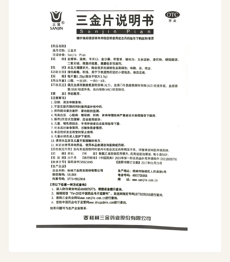 三金片,中成药名。为清热剂,具有清热解毒,利湿通淋,益肾功效。主治下焦湿热所致的热淋、小便短赤、淋沥涩痛、尿急频数;急慢性肾盂肾炎、膀胱炎、尿路感染见上述证候者;慢性非细菌性前列腺炎肾虚湿热下注证。