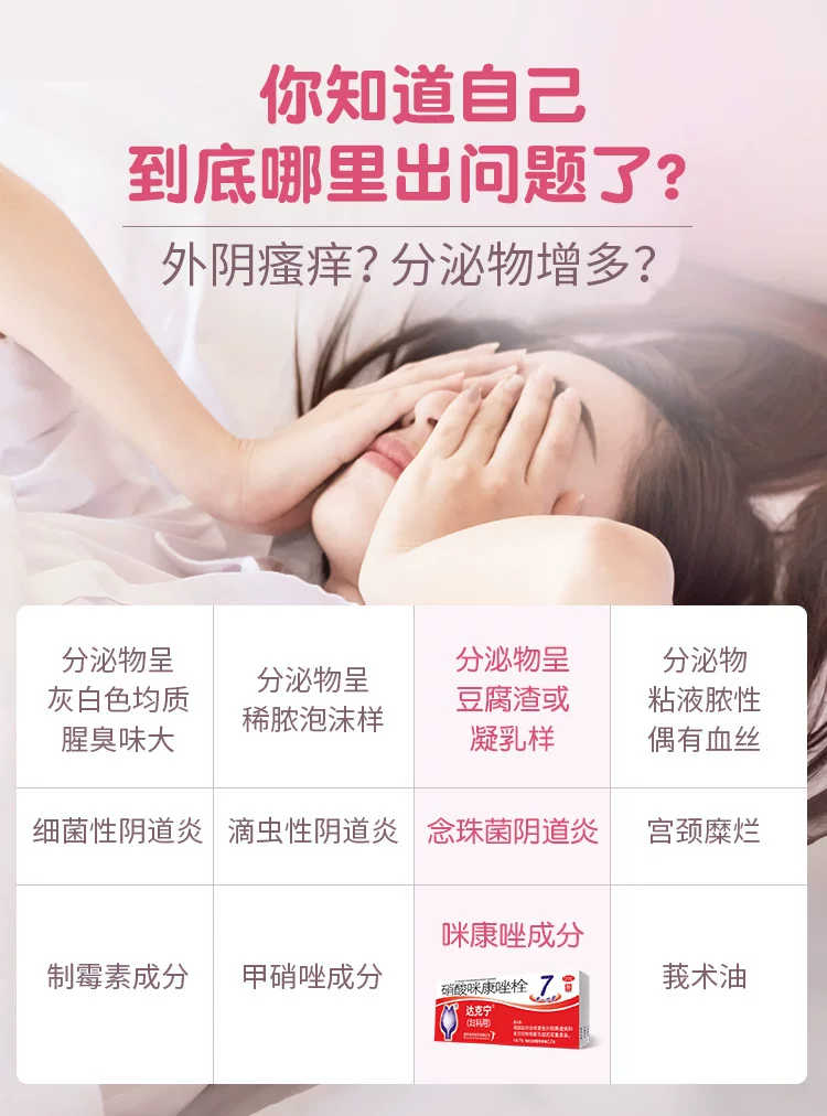 【功能主治】局部治疗念珠菌性外阴阴道病和革兰阳性细菌引起的双重感染。