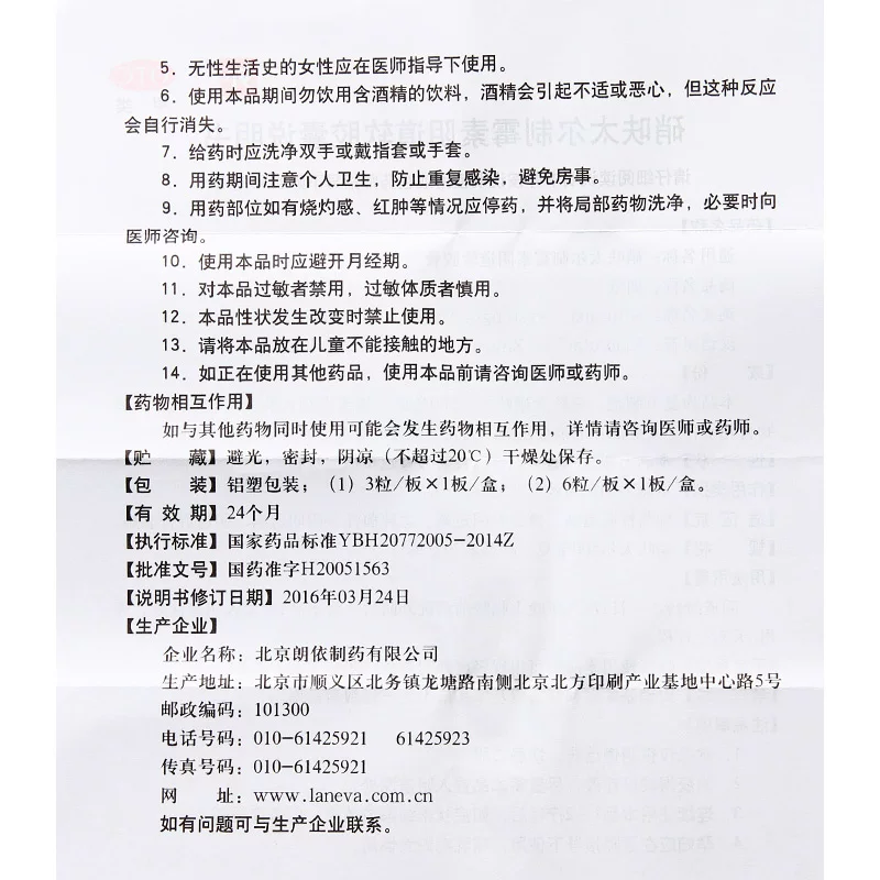 2.为获得较好的疗效,尽量将本品置入阴道深处。