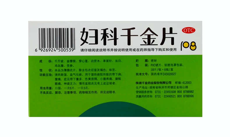 - 药品名称: 妇科千金片