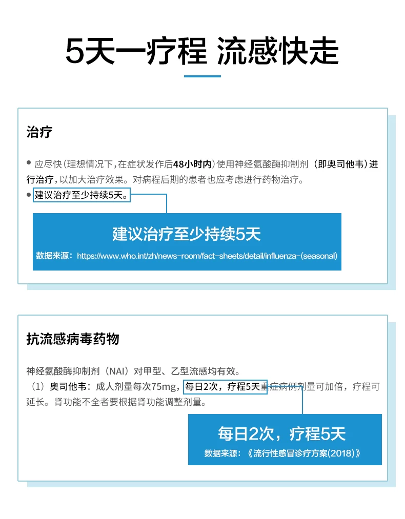 在流感症状开始的第一天或第二天(理想状态为36小时内)就应开始治疗。
