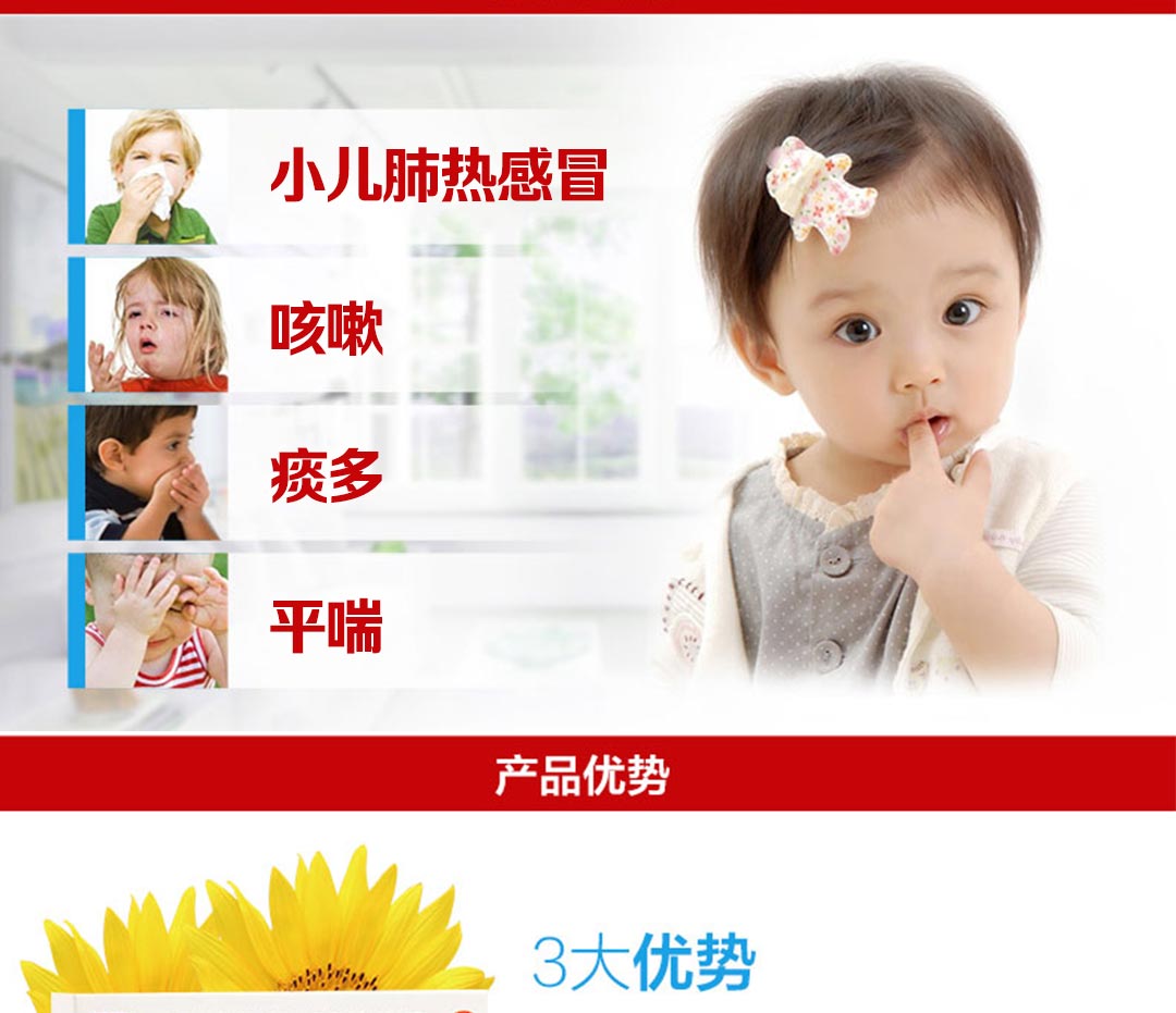 【功能主治】清热化痰,止咳平喘。用于小儿肺热感冒引起的呼吸气促,咳嗽痰喘,喉中作响。