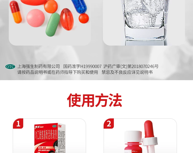 | 主要原料 | 本品每毫升含主要成分对乙酰氨基酚100毫克。辅料为高果糖浆、丙二醇、甘油、山梨醇、纯水、黄原胶,微晶纤维素,羧甲纤维素钠,枸缘酸,苯甲酸钠,对羟基苯甲酸丁酯,使用红色素和食用香精。 |