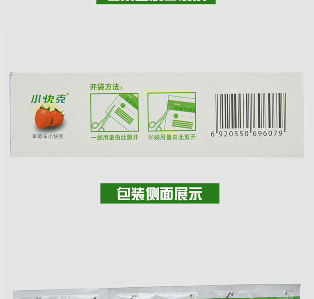 【药品成分】本品为复方制剂,每袋含对乙酰氨基酚125毫克、马来酸氯苯那敏0.5毫克、人工牛黄5毫克。辅料为蔗糖、草莓香精、聚维酮K30。