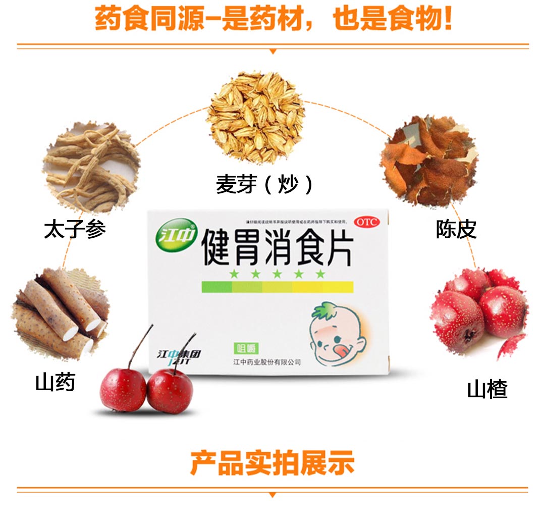 【药品成分】太子参、陈皮、山药、炒麦芽、山楂。辅料为蔗糖、糊精、枸橼酸、山楂香精、硬脂酸镁。