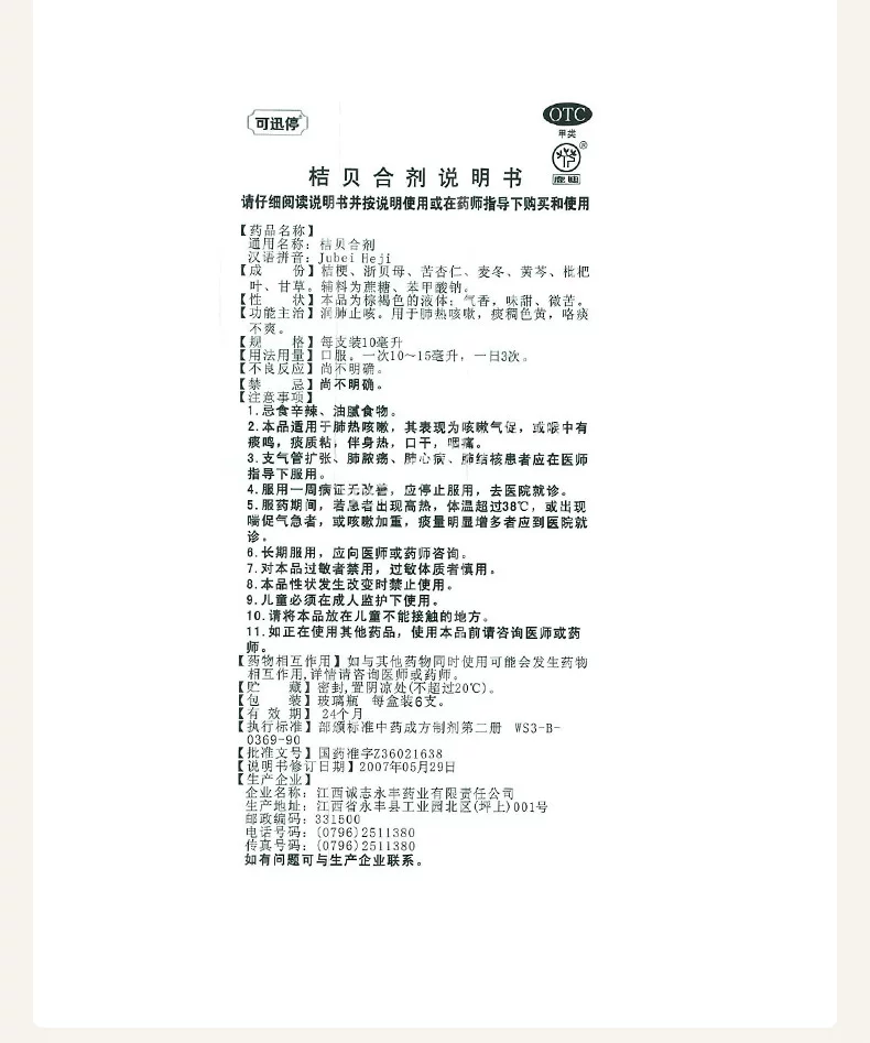 桔贝合剂,润肺止咳。用于肺热咳嗽,痰稠色黄,咯痰不爽。