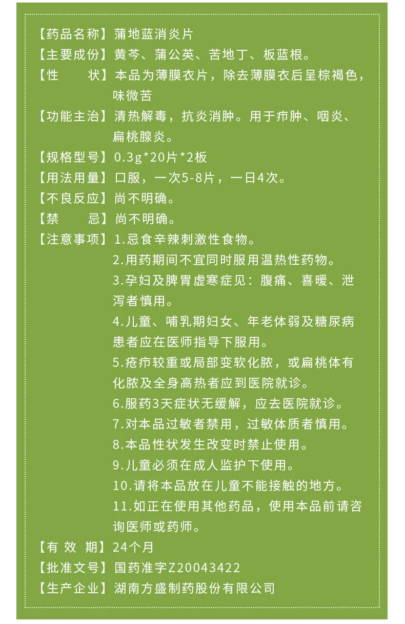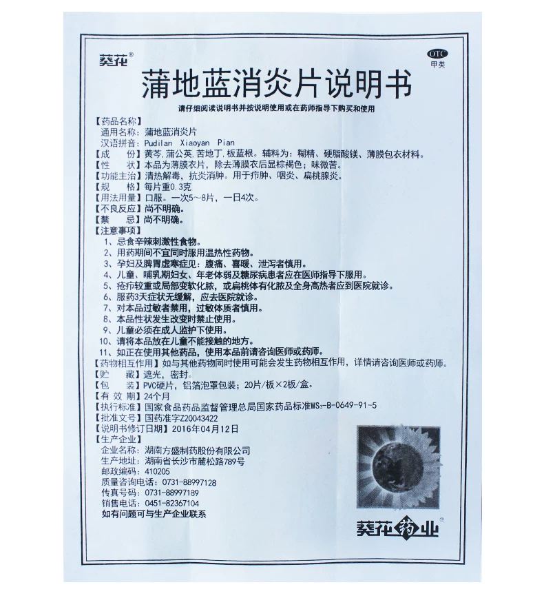 - 产品名称:葵花 蒲地蓝消炎片 0.3g*...