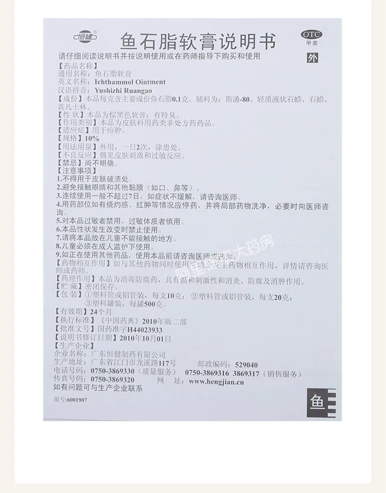 - 药品名称: 鱼石脂软膏