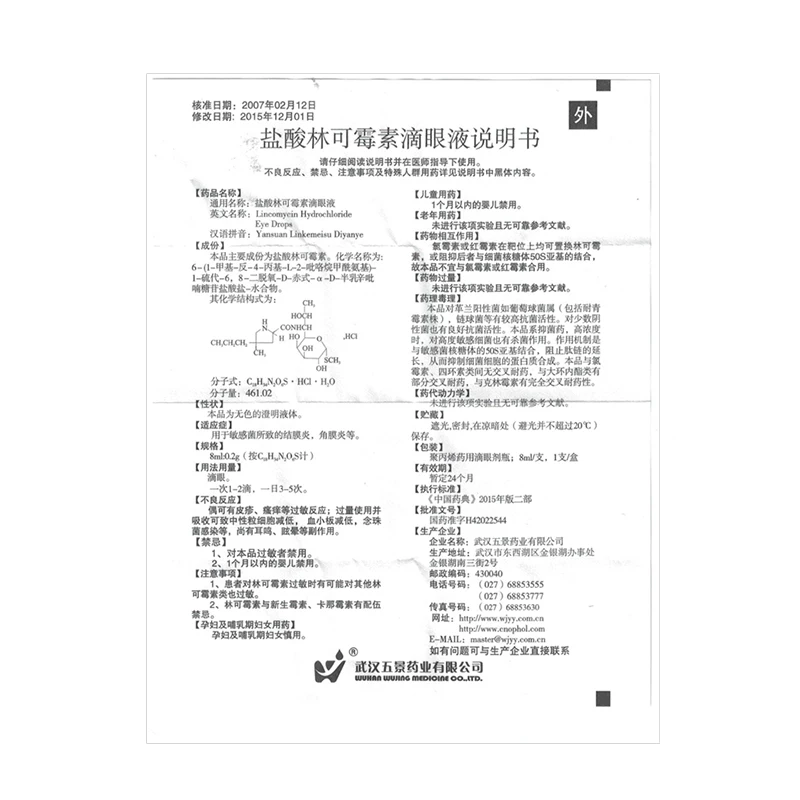 【主要成份】 盐酸林可霉素。化学名称:6-(1-甲基-反-4丙基-L-2-吡咯烷甲酰氨基)-1-硫代-6,8-二脱氧-D-赤式-a-D半乳辛吡喃糖苷盐酸盐-水合物。