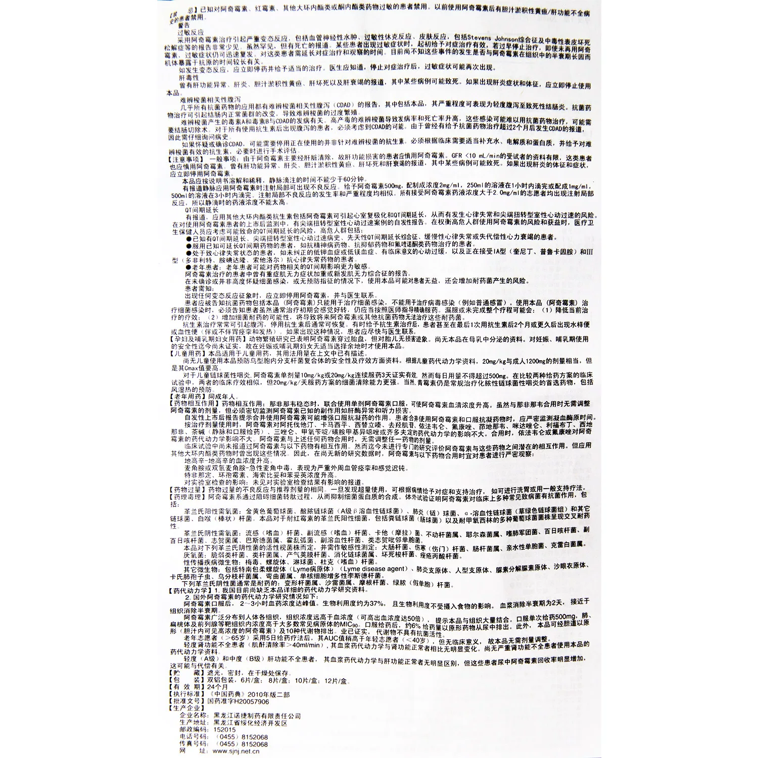 病人对本品的耐受性良好,不良反应发生率较低,因不良反应而中断治疗者约0.3%。不良反应中消化道反应占大多数,主要症状包括腹泻(稀便)、上腹部不适(疼痛或痉挛)、恶心、呕吐,偶见腹胀。一般为轻至中度。偶见肝转氨酶可逆性升高,发生率与其它大环内酯类抗生素及青霉素类相似。曾见一过性轻度中性粒细胞减少症,但是否与阿奇霉素有关尚未证实。
