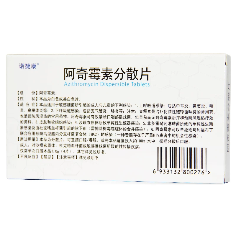 阿奇霉素分散片,本品适用于敏感细菌所引起的下列感染:中耳炎、鼻窦炎、咽炎、扁桃体炎等上呼吸道感染;支气管炎、肺炎等下呼吸道感染。皮肤和软组织感染。沙眼衣原体所致单纯性生殖器感染。非多重耐药淋球菌所致的单纯性生殖器感染(需排除梅毒螺旋体的合并感染)。