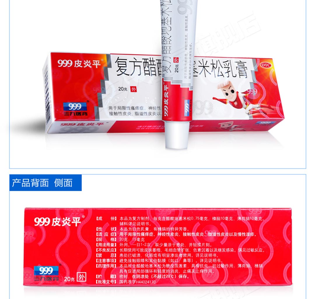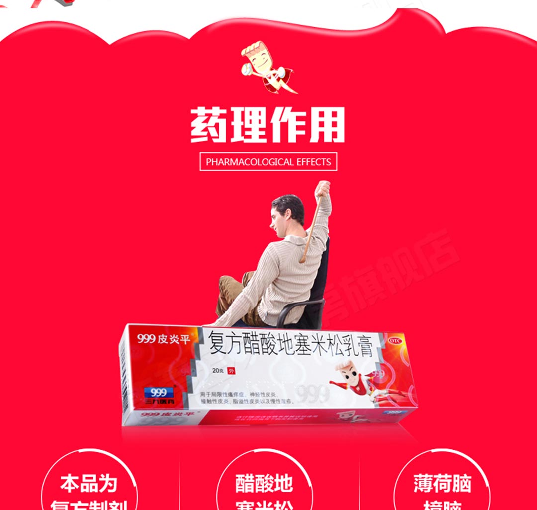 【药品名称】通用名称:复方醋酸地塞米松乳膏 商品名称:999皮炎平 英文名称:Compound Dexamethasone Acetate Cream 汉语拼音:Fufang Cusuan Disaimisong Rugao